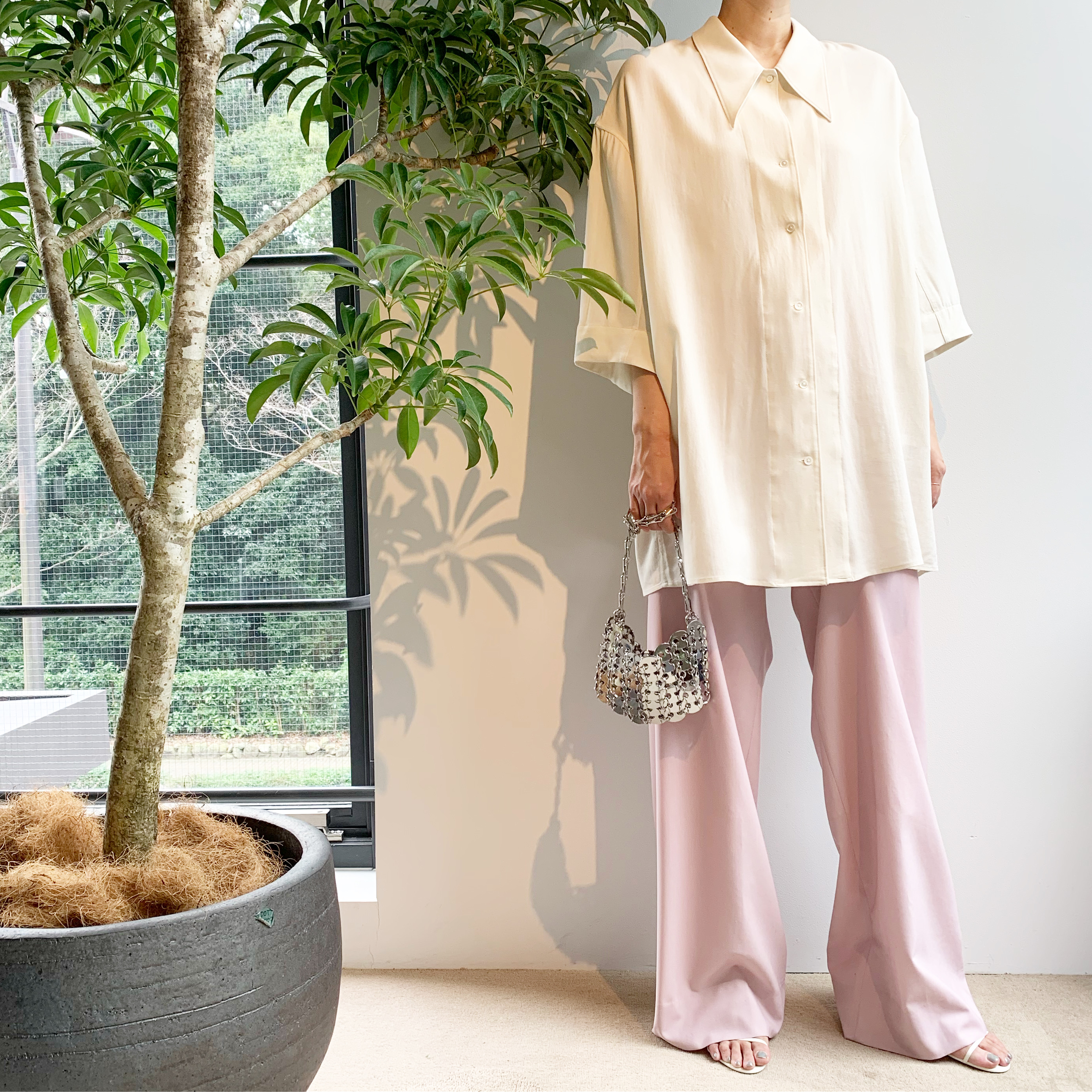 LEMAIREのボーイフレンドシャツは肩のラインを華奢に見せ、