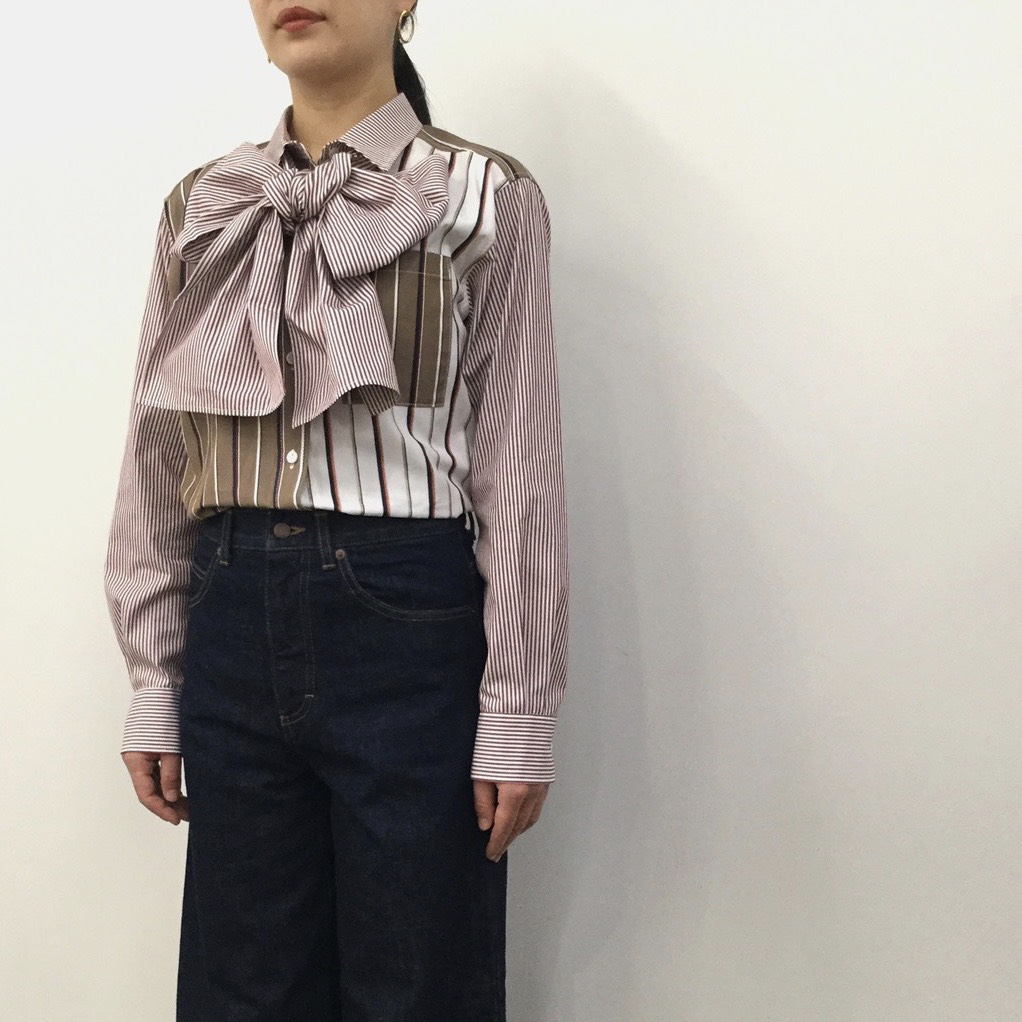 クラシックなメンズシャツをベースに大胆なボウタイがポイントな遊び心たっぷりな一着です。