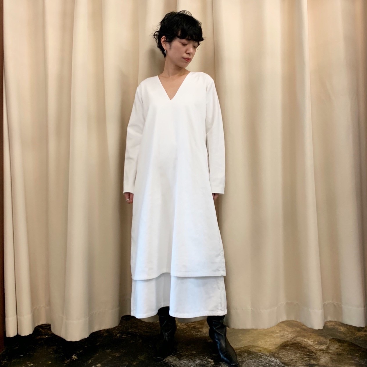 オーガニックコットンのホワイトデニムで作られたTOOのワンピースは、