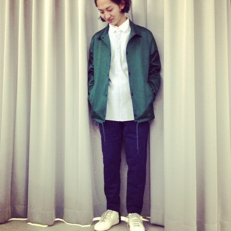 コーチジャケットもスウェットパンツも使い勝手は抜群です。