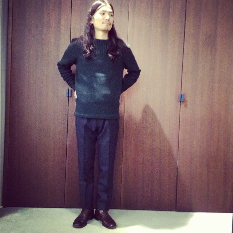 綺麗なグリーンのニット入荷致しました。絶妙なバランスです。