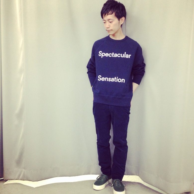 本日秋冬入荷しました!プリントの入ったスウェットに細身のコーデュロイパンツは同カラーがおすすめです!