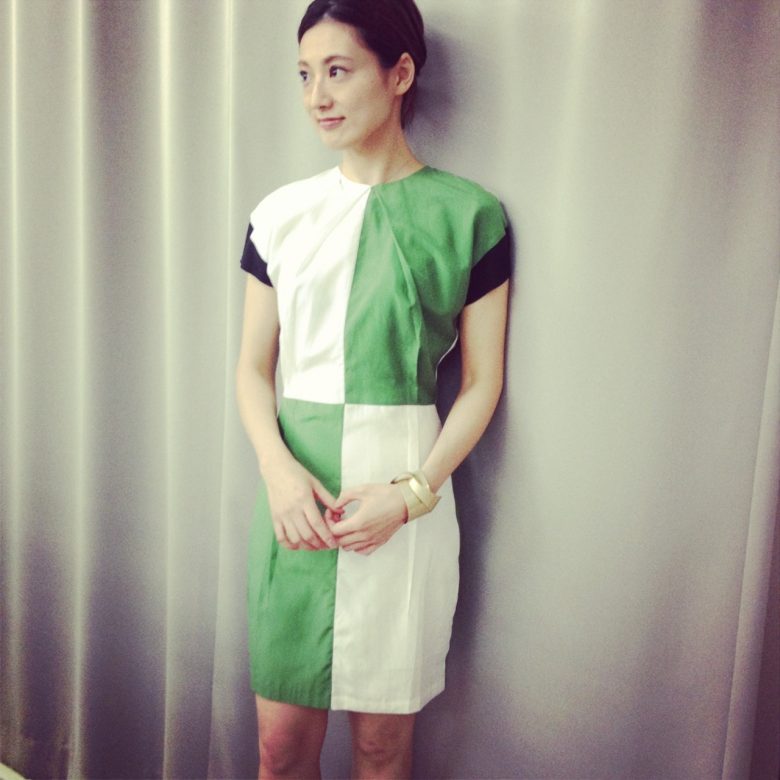 カラーブロックが鮮やかなワンピース。程よくフィットするシルエットがキレイです!