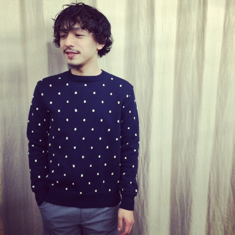 ドットのデザインがありながらもシンプルに合わせることのできるニットは、今からの季節に大活躍です!