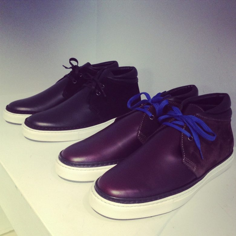 上質なカーフレザーとスウェードの切り替えで足元を上品に。
