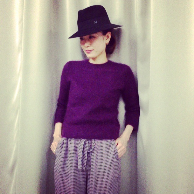 コンパクトでボトムを選ばず着られるアンゴラニットです。