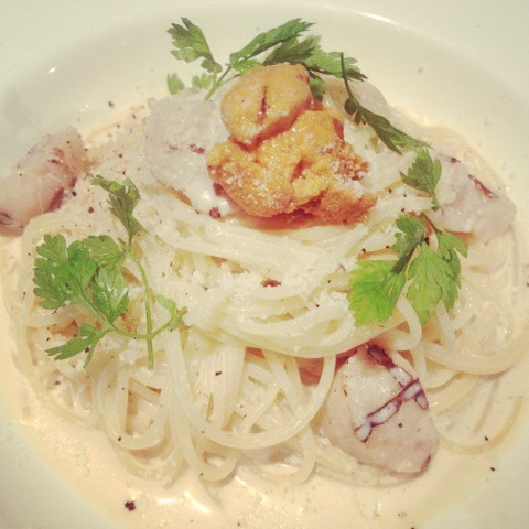 Chilled spaghetti of scallop and urucin