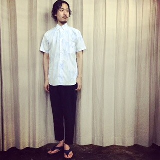 美しいブルーの斑染めが印象的なシャツは軽く涼感のあるポプリン生地を使用しカラーリング、素材感共にこの時期にぴったりの一枚です‼︎