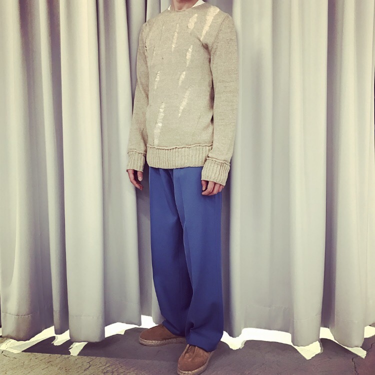 COMME des GARCONS SHIRT17SSより、ダメージ加工が印象的なリネン素材のニット。