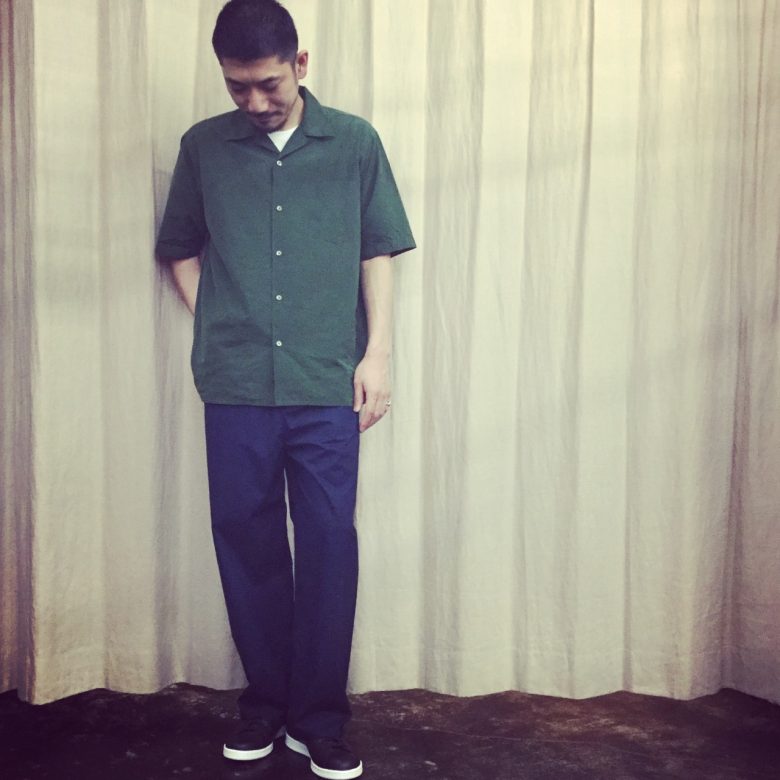定番のコモリシャツと同タイプの生地を使用したオープンカラーシャツが入荷致しました‼︎