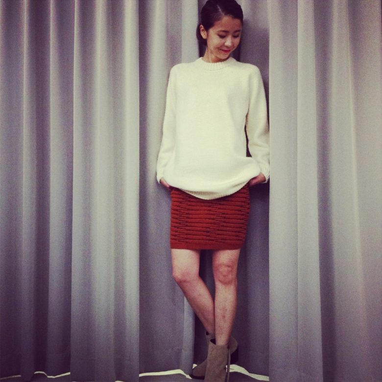 タイトなシルエットのスカートや、メンズライクなスラックスでのコーディネートがお勧めです。