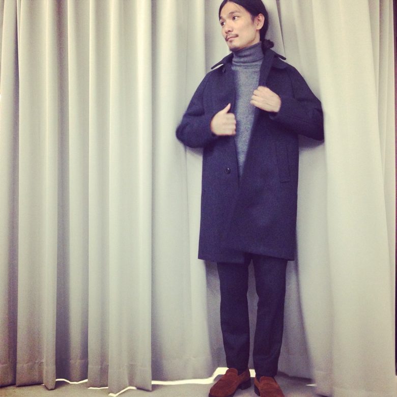 18.09.2014 COMOLI SOUTEINCOLLAR COAT ¥98,000+tax col…gray,navy,camel size…1,2,3 着心地抜群のコート。 ラグランのシルエットは 形も綺麗です。 comoli