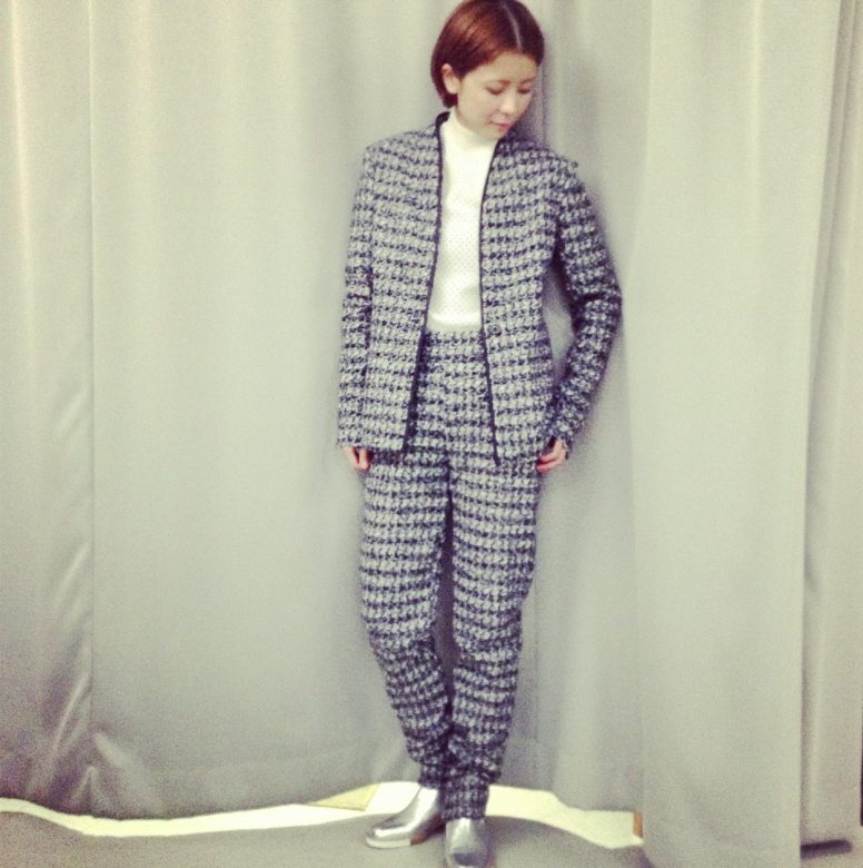 モードに着こなせるツイードです。