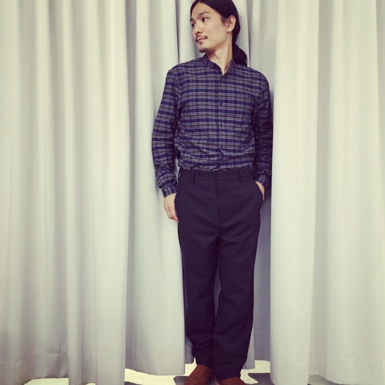 定番のマオカラーシャツが入荷致しました。 綺麗なチェック柄が映えます。