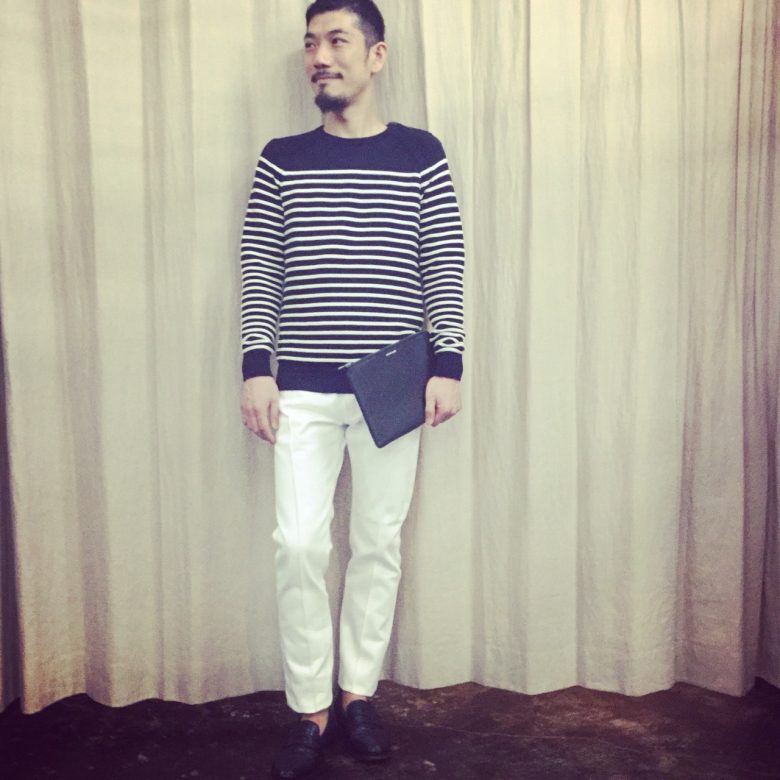 コンパクトなシルエットに加えネイビー×ホワイトのカラーバランスがとても上品なボーダーニット。