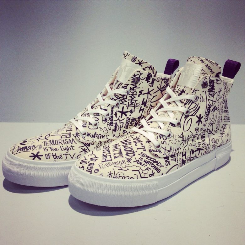 ハイカットのスニーカーはグラフィックが印象的で足元にインパクトを!