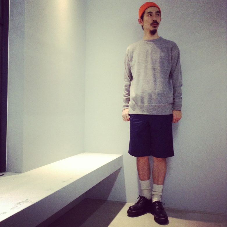 パーカータイプと別の型で無地のスウェットとなります。日本の生地を使用し表情も独特な風合いです。