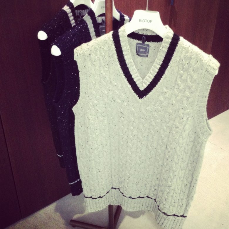 16.10.2013 GRAY knit best ¥38.850- cor white navy brack ケーブルにネップのデザインを施しシャツと相性抜群です。 秋に重宝するベストとなっています。