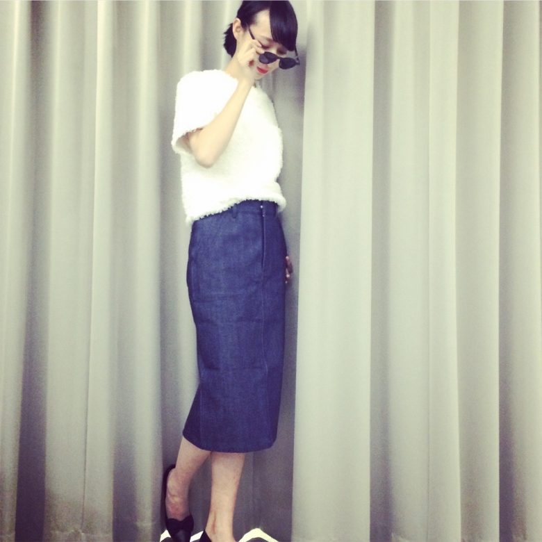 11.02.2015 HYKEのひざ下丈のBAKER SKIRTは前シーズンよりストレートラインで大人っぽく◎ top MADISON BLUE ¥22,000 + tax skirt HYKE ¥18,000 + tax hyke madisonblue