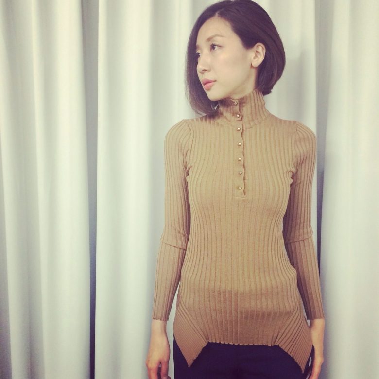ゴールドのボタンはスナップボタンになっている為、襟を開くことも可能。