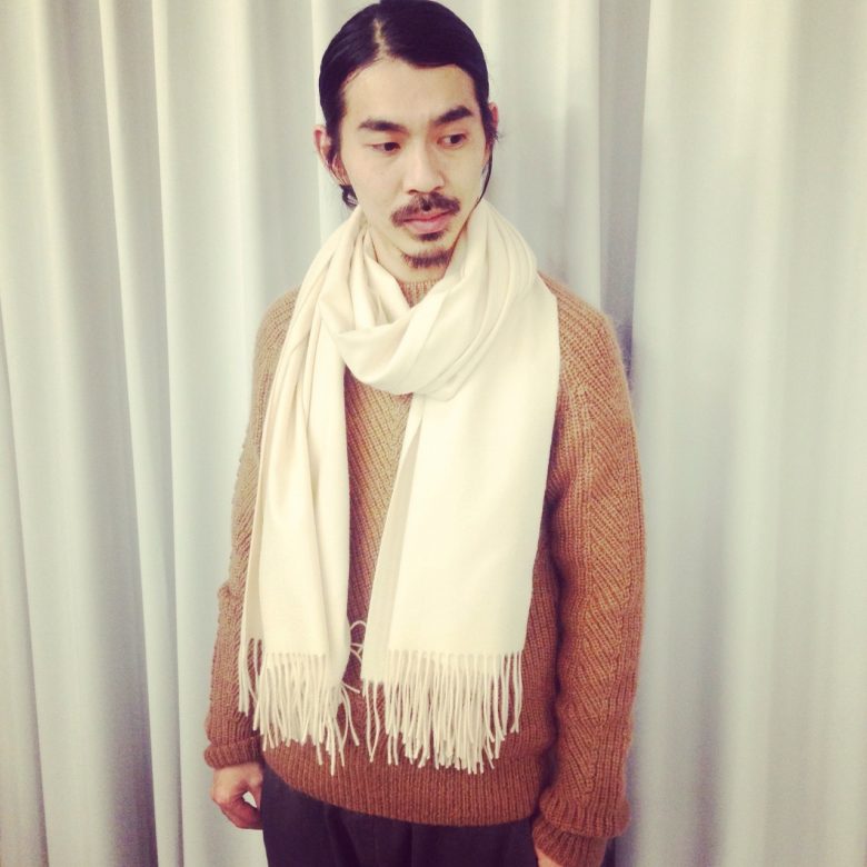 17.12.2015 Johnstons cashmere store price…62,000+tax カシミアの大判ストールはギフトでもおすすめです!ベージュのニットに上品な印象のホワイトを! johnstons