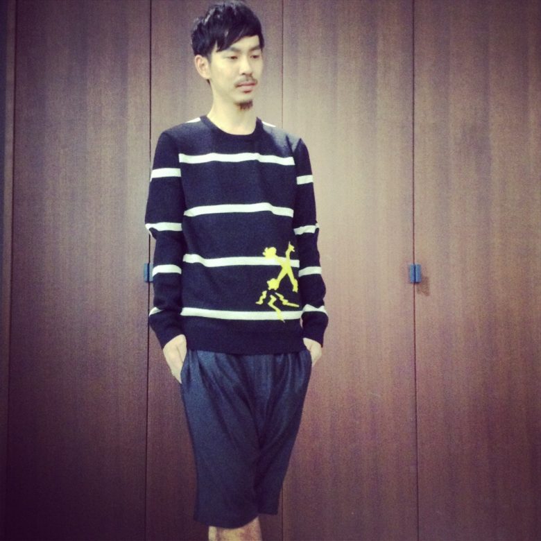 ボーダーのピッチ幅が広めのニット入荷しました!2型で遊び心のあるワンポイントデザインを秋のスタイリングに是非!