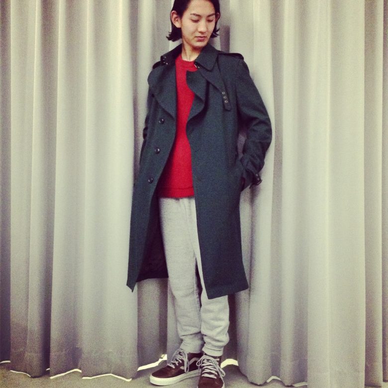 春先も着られるギャバジントレンチコートです。kolorらしく遊びを効かせた一品。