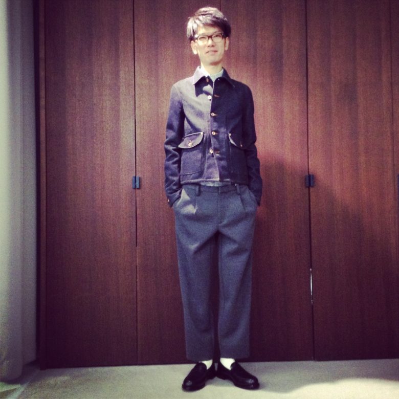 パンツはウエストにタックが入って、ゆったりした腰回り、裾にかけてテーパードしてリラックス感のある一着。