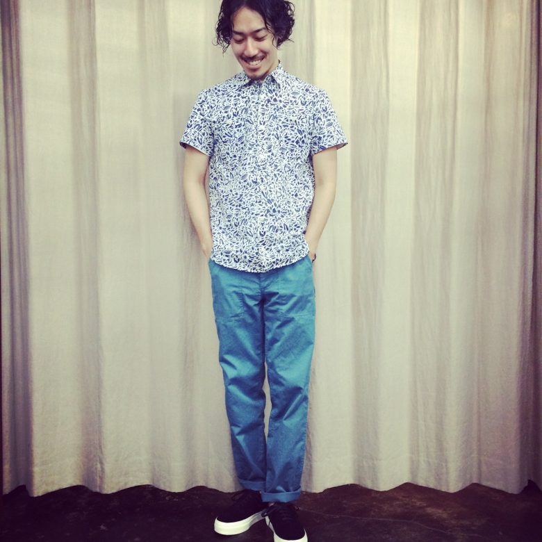 コンパクトなシャツにリラックス感のあるワークパンツでのスタイリングがおすすめです‼︎