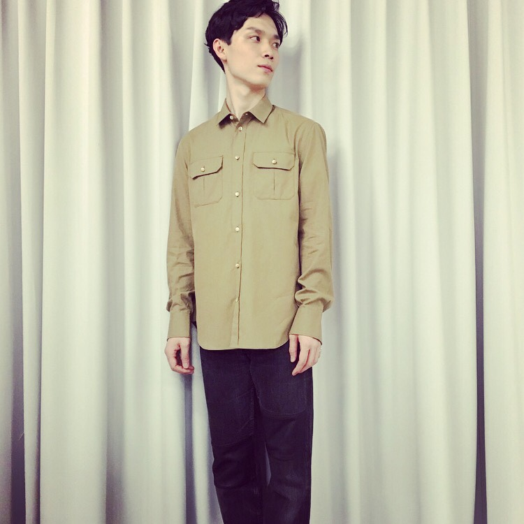 ツイル生地で光沢感のあるシャツは、デニムとの相性も良いです◎
