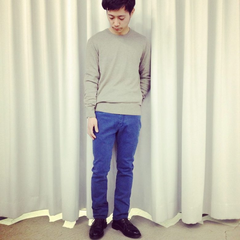 Margielaの春物の中でも、中間色が特に綺麗なニットとパンツ。