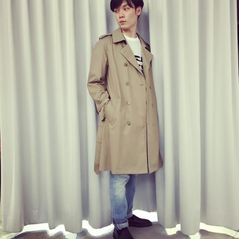 生地表面に光沢感があり、上品な印象のトレンチコートが入荷。