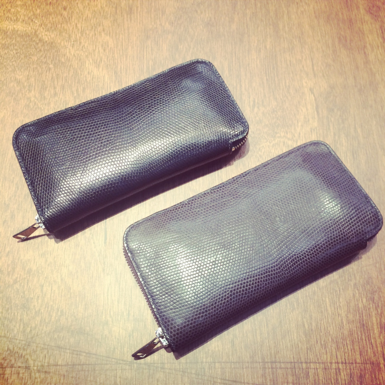 上品な輝きと独特の革目が美しいリザードを使用し、オールハンドメイドで作られた財布は他には見られないクオリティと高級感です。