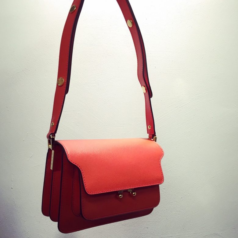 TOKYO 16.01.2017 MARNIよりアイコンバックでもあるTRUNKが入荷致しました。 サイドから覗くアコーディオン風のディテールが、モダンかつクラシカルな雰囲気です。 ビビットなオレンジカラーが目を引きます。 MARNI ¥175,000+tax 17ss BAG marni