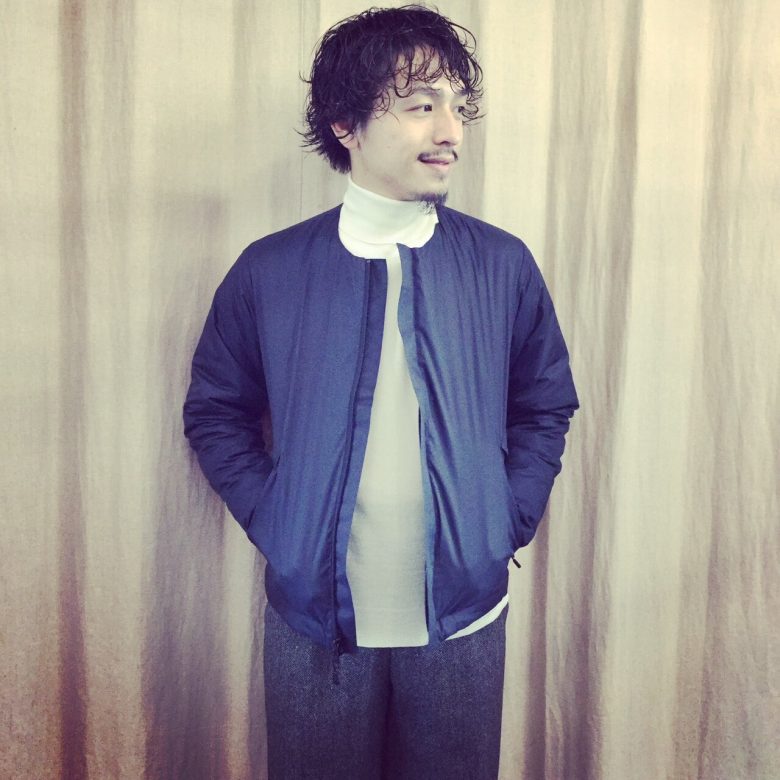 MHWよりダウンブルゾンが入荷しました!ノーカラーのミニマルなデザインで、タウンユースに向けた使い勝手の良いアイテムです!