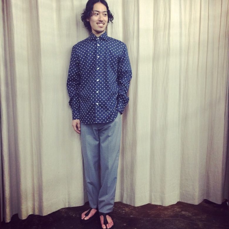 上質なイタリア生地を使用したシャツにドット柄が素敵な1着です。