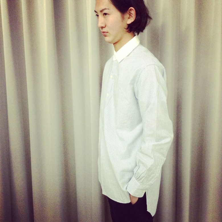 25.01.2015 NAISSANCE 15SS detachable collar long shirt ¥20,000+tax col…blue,navy size…S,M テールの長いプルオーバーのOXシャツ。袖口のタックも程よくクラシカルな印象に。 NAISSANCE