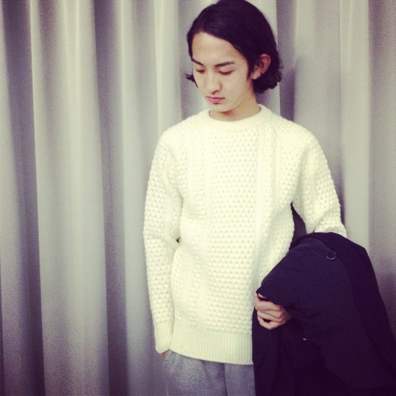 26.09.2014 NAISSANCE Cable crew knit ¥29,000+tax col…ivory,gray size…S,M インナーには立体感のある編目のニットを。 NAISSANCE