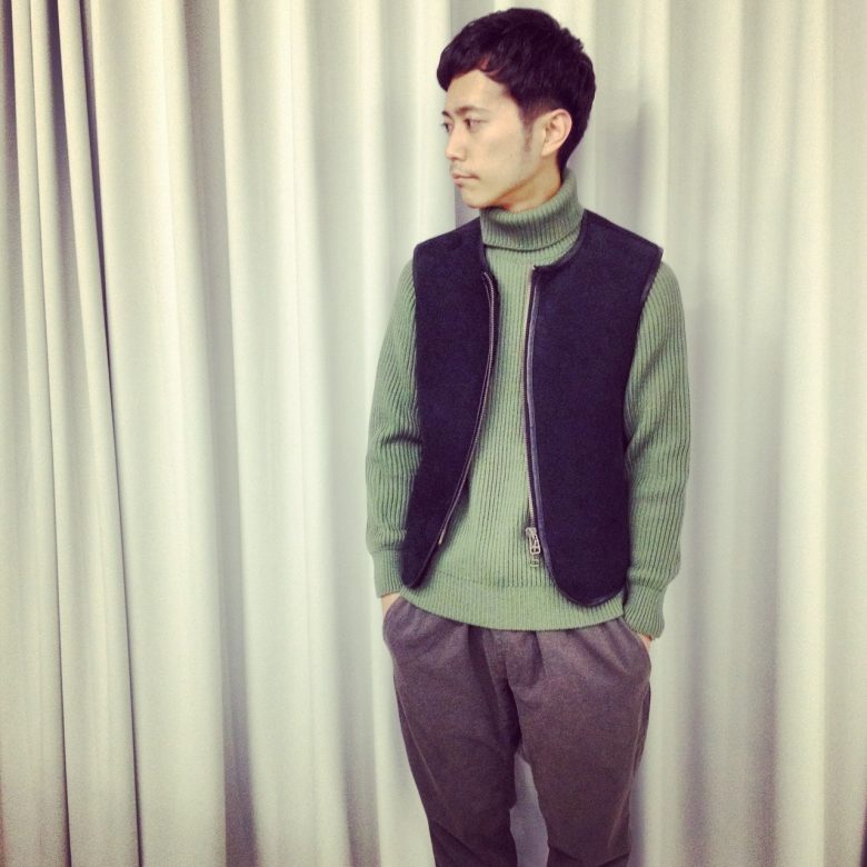 この時期は軽めのコートやベストと是非。