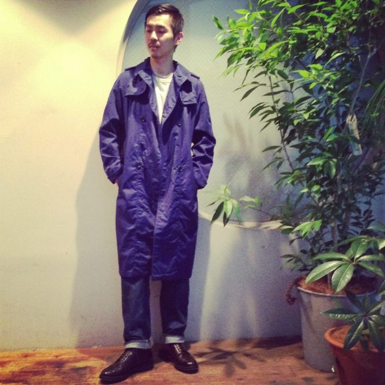 08.07.2013 NAISSANCE TRENCH COAT ¥47.250- cor BLUE size M ブルーのトレンチコートにリーバイスとオールデンの合わせで 問い合わせもお待ちしています BIOTOP 03-3444-2421