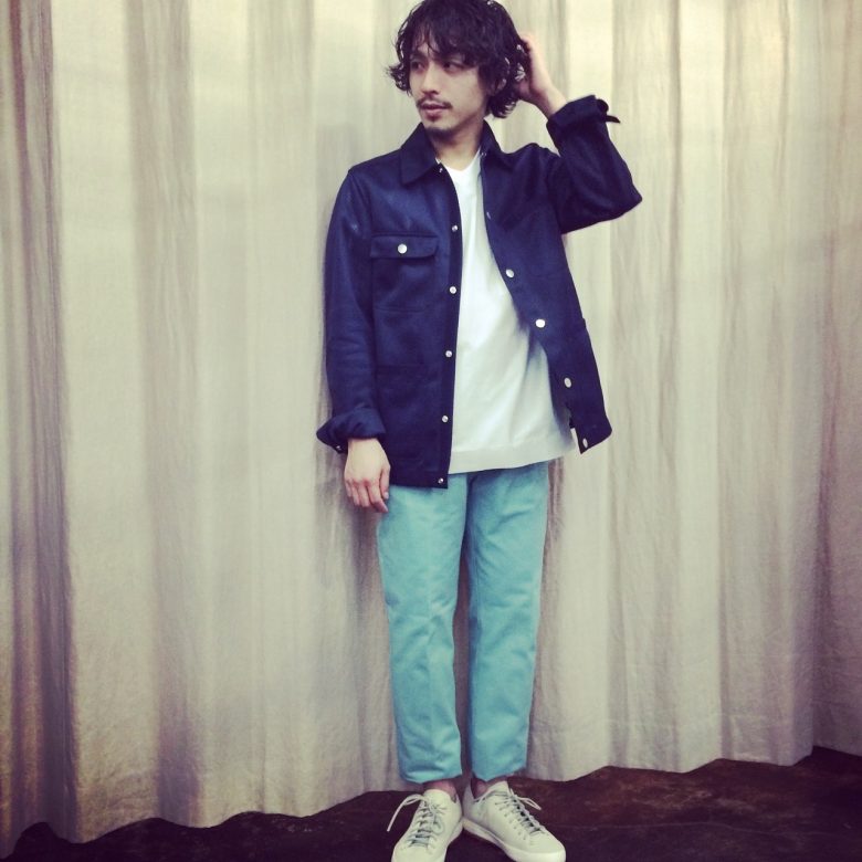 すっきりとしたシルエットと程良い柔らかさを兼ね備えた生地感はとても着回しの効く一品です。