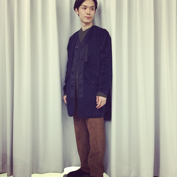 肌触りの良いウール素材のノーカラーコートは、機心地も良くレイヤードにもお勧めです。