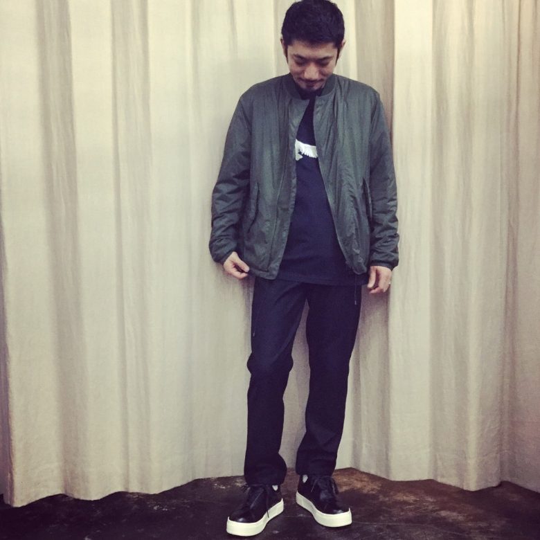 MA-1をモチーフにしたブルゾンはナイロン素材の表地に中はダウン入りとなり軽く柔らかな着心地がとても快適な一着です!