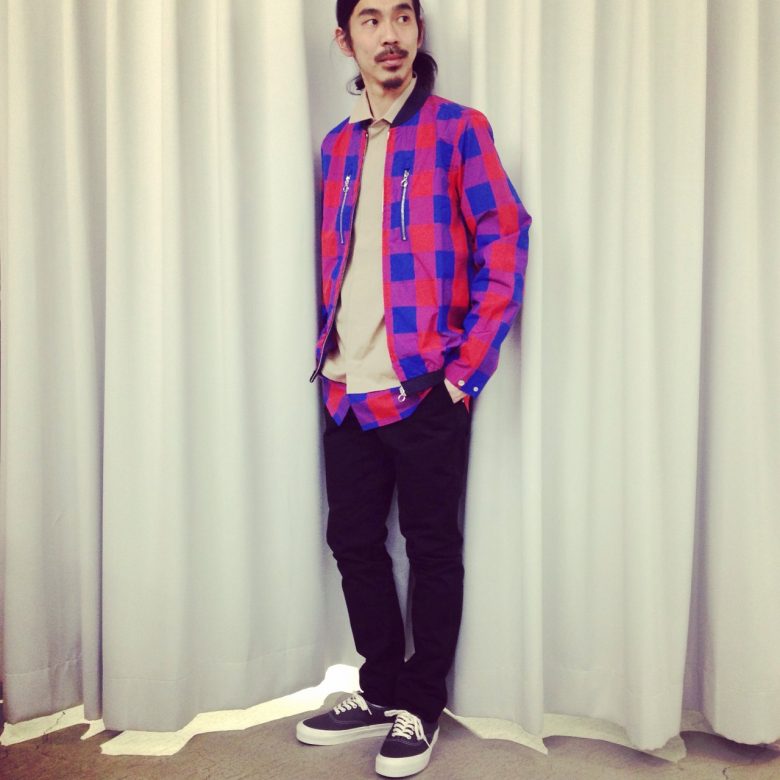 発色の良いブルゾンは軽く羽織れレイヤードスタイルがおすすめです!
