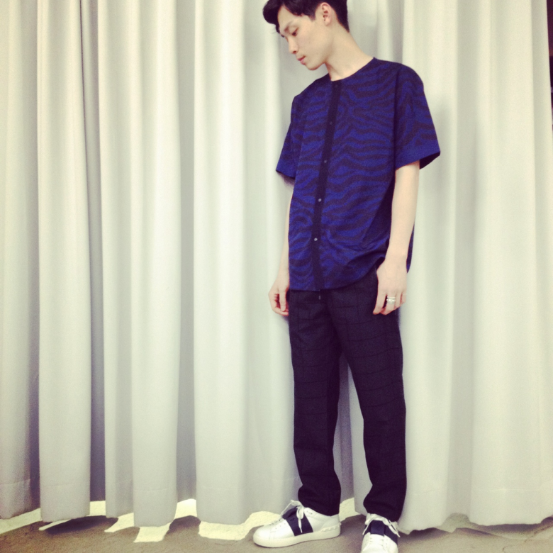 単品でもインパクトのあるゼブラ柄のノーカラーシャツ。