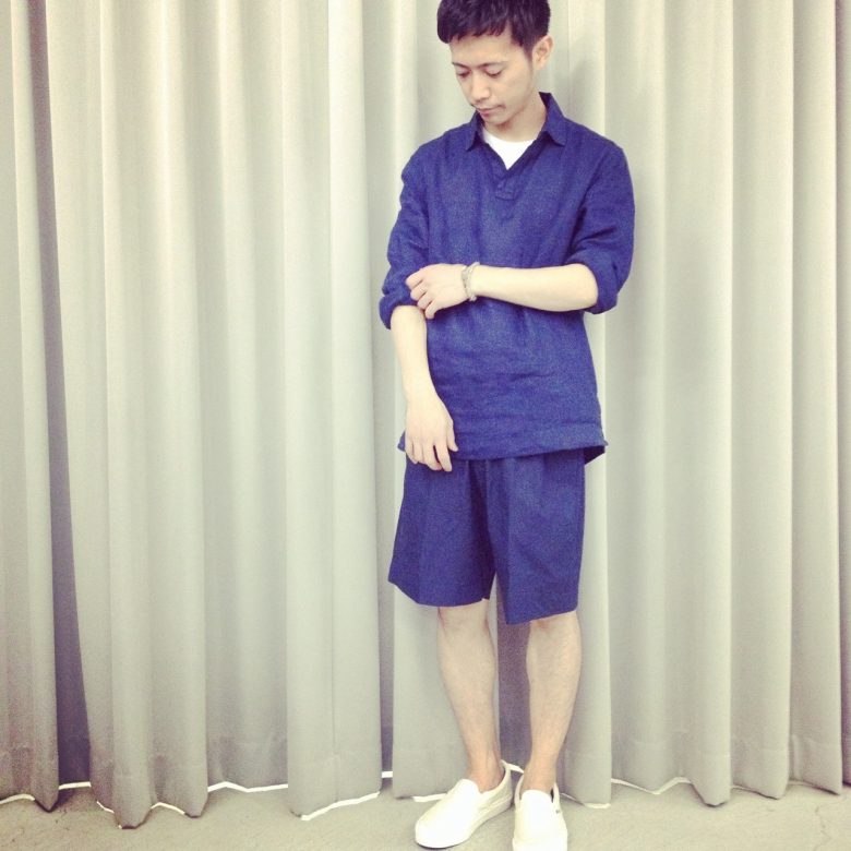イージーパンツやショートパンツでのリラックス感のあるスタイリングでも、程よく子綺麗に。