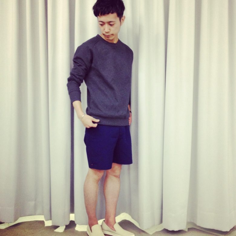 夏のレジャーなぴったりのスウェットとスイムショーツ。
