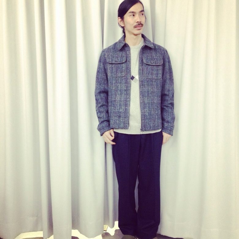 グレーのチェックブルゾンは着丈のバランスが良く、生地にも拘りが感じられる逸品です。