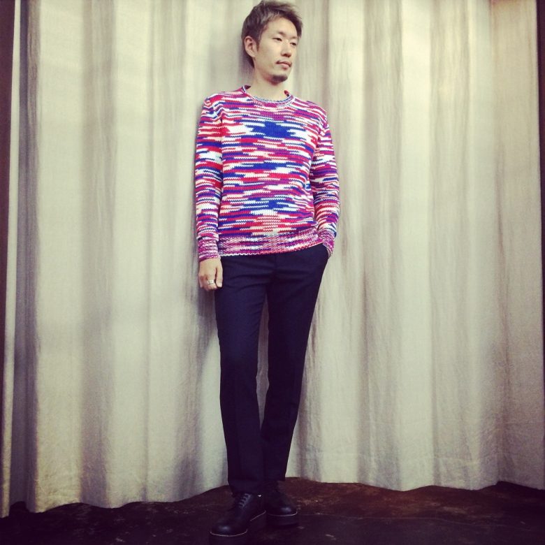 ネイビーのスラックスでの上品なスタイリングがオススメです◎