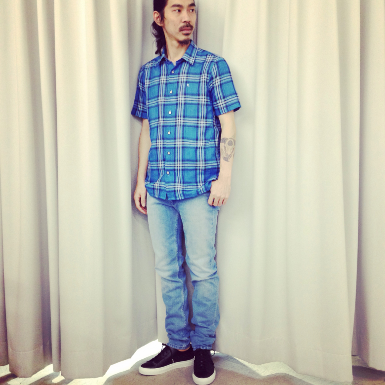 TOKYO 17.04.2016 RAF SIMONS shortsleeved shirt with R-embroidery price…52,000+tax col…blue size…46,48 肌触りの良いシャツは同色のパンツで。 発色の良いブルーが目を引きます! 16ss rafsimons WEAR